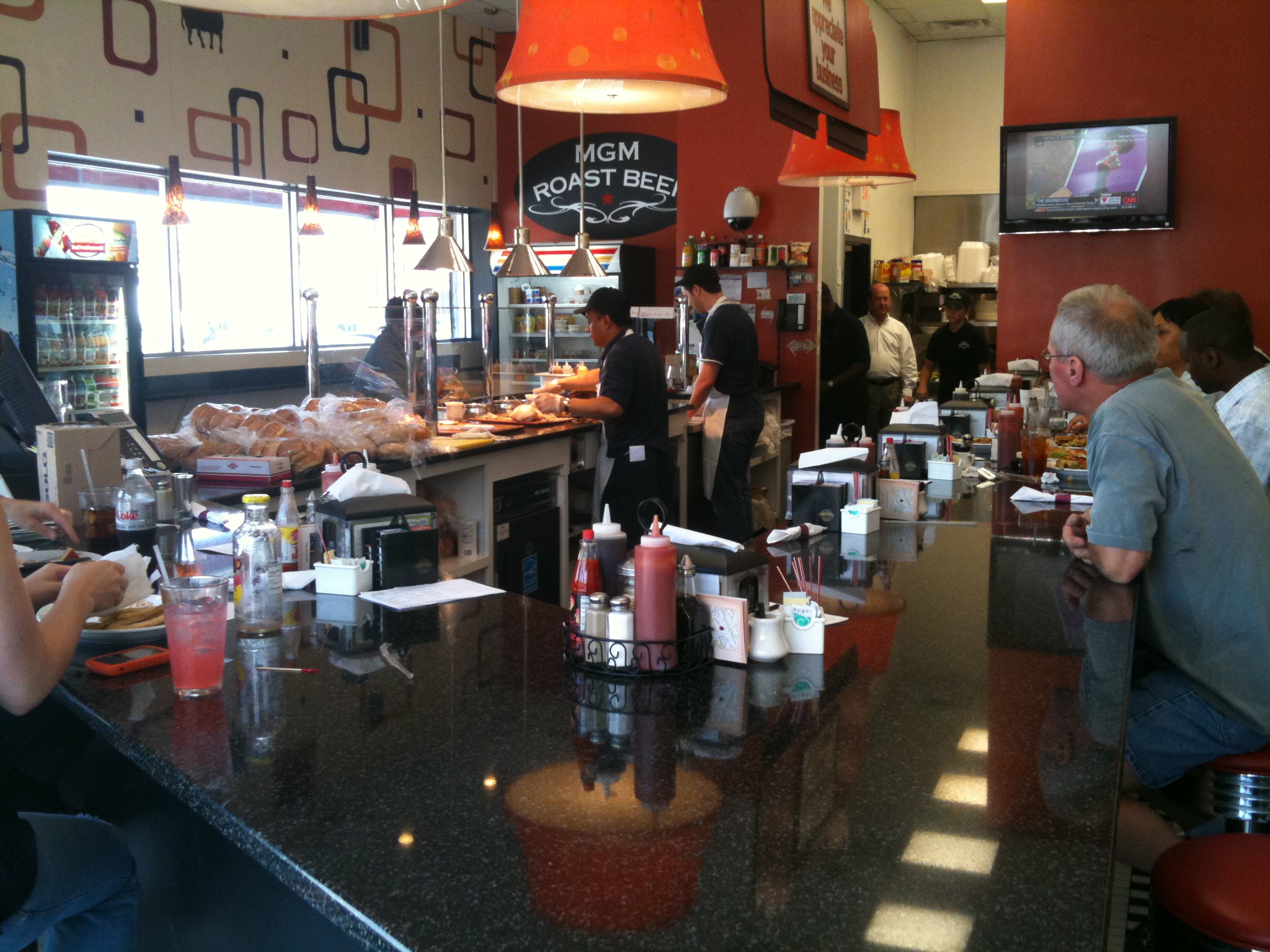 know (not a big deal). There is no alcohol in the place which is fine. It doesn’t seem like the kind of place that needs it. They have some great roast beef, ham, turkey, brisket, etc sandwiches and fries. They also offer a variety of other foods (breakfast sounds yummy). Click here to check out their website!