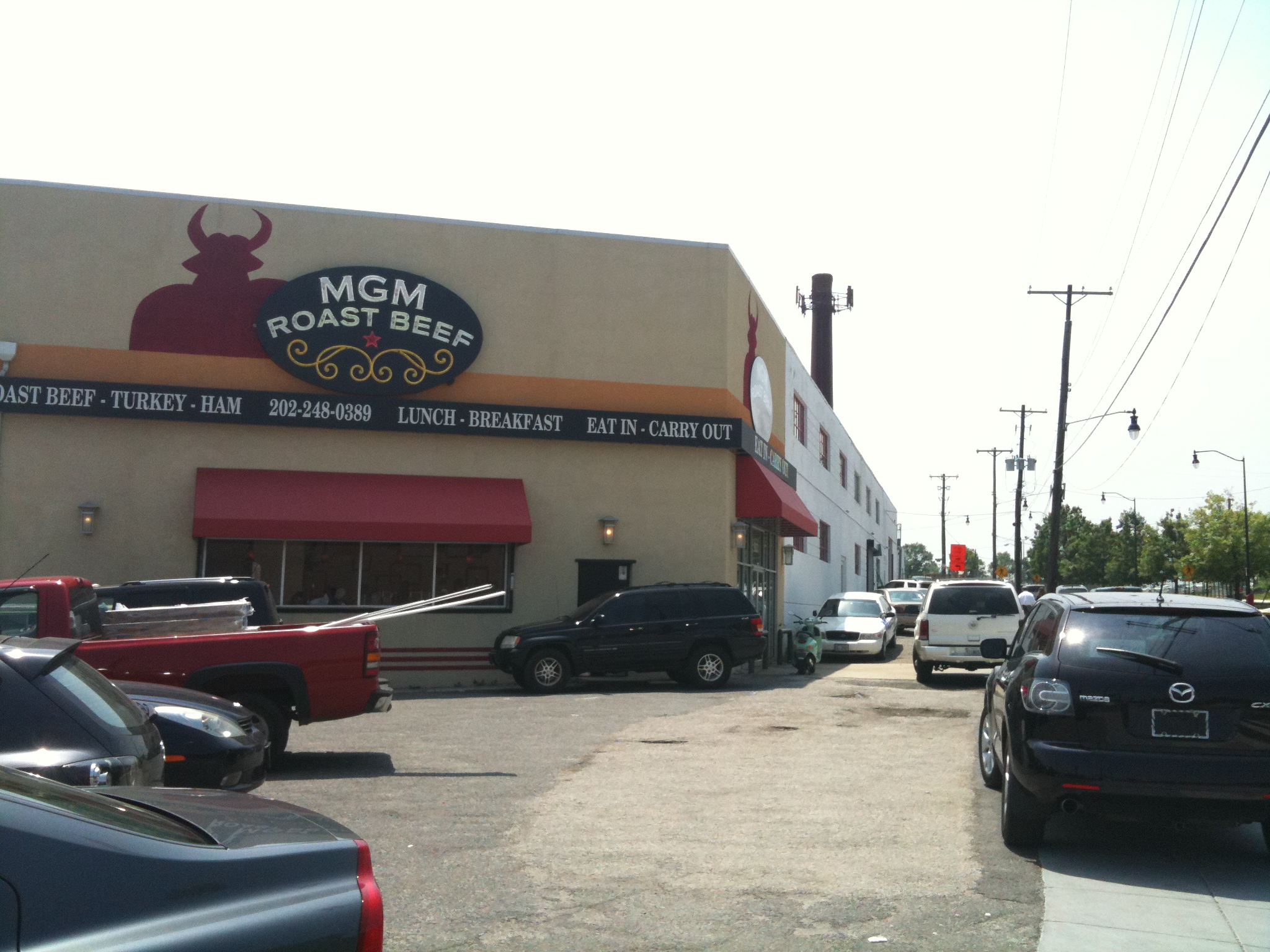 I had the opportunity to eat lunch at MGM Roast Beef today. Although this is not directly on RIA, it is just off of the Avenue, next to the auto auction and on the other side of the Giant/Home Depot shopping center. In fact, the eatery is owned by Mark Loesberg, President of the Capital Auto and Truck Auction, Inc. The building it is in use to be a liquor store and when the lease came up for renewal a little over a year and a half ago, Mr. Loesberg decided not to renew the liquor license and instead, open his family owned sandwich shop.