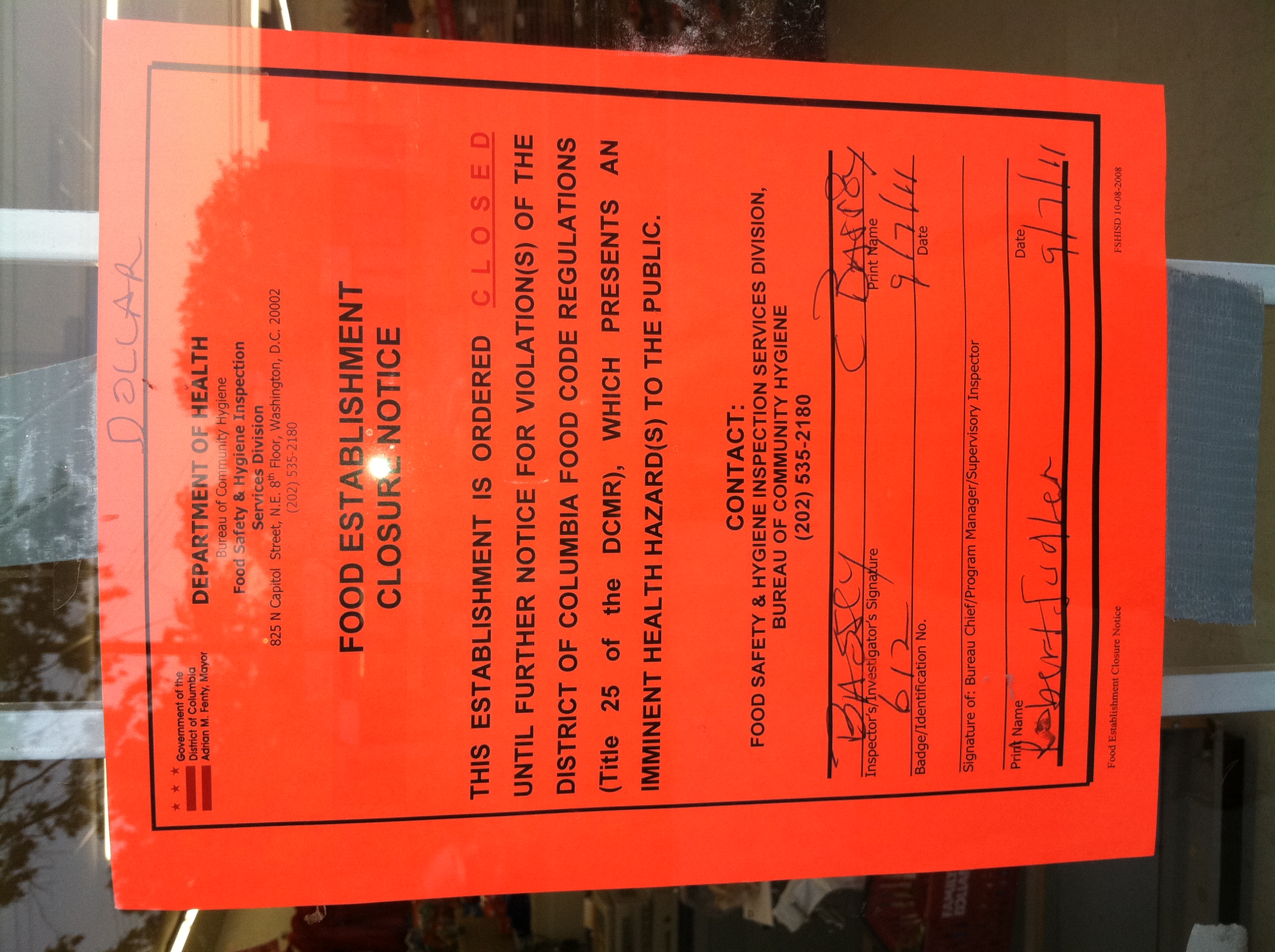 It seemed as we all could have guessed that this was coming. The Family Dollar at the corner of Rhode Island Ave NE at Thayer Street was ordered closed by the DC Dept of Health today because the store posed an iminent health hazard to the general public.