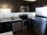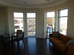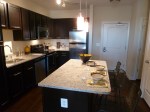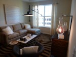 The group was then led to the south building’s top floor to look at the residential model units and various other sized apartments. I was, as was the rest of the group, quite impressed with the units. The floors in the units varied from hardwood-look resilient flooring (both dark and light) to a very interesting stained concrete floor. There are three sizes of apartments (1, 2, and 3 bedrooms) available and the development has 55 affordable units and 219 market priced units. The market units vary in price as well, from as low as $1,700 for a 1-bedroom up to $3,500 for the 3-bedroom. Up to 10 units have already been occupied and are being used. Below are some of the photos from the model units.