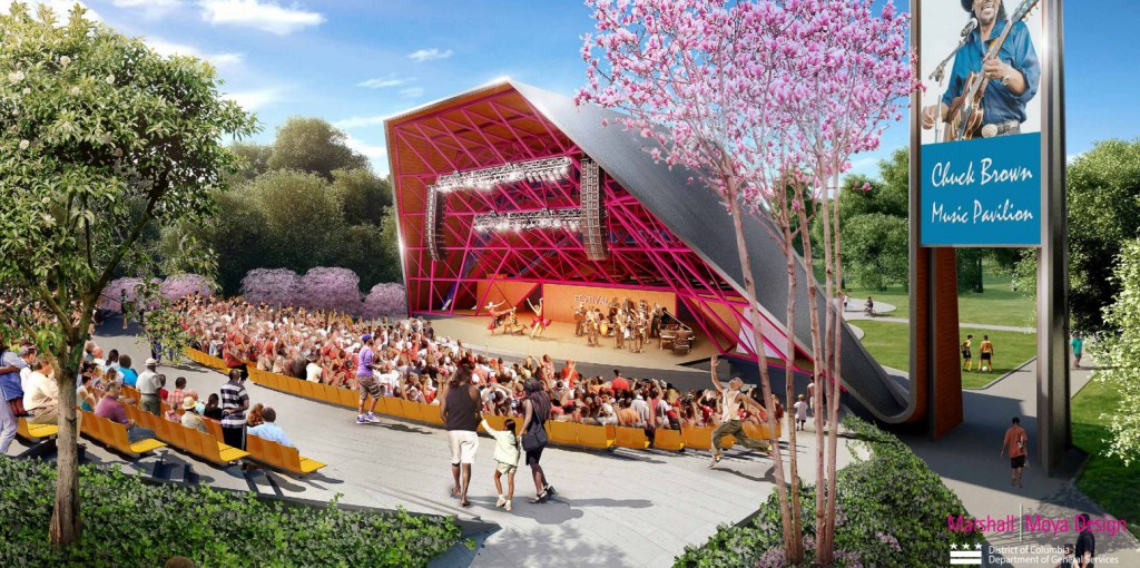 The Washington Post gives more details (http://www.washingtonpost.com/blogs/mike-debonis/wp/2013/01/10/chuck-brown-park-will-feature-bandshell-timeline-tower/). It’s going to be a $1 million structure/renovation! RIAInsider please post the photos from WaPo. It looks like the Langdon will be significantly reconfigured.