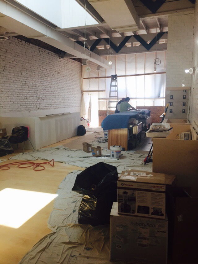 I was given a tour of the restaurant, and although they are still knee deep in renovations and construction, the potential for the space was obvious. Long gone is the dark walls and dark lighted space that once was Lace. Erin and Karlos are bumping out the facade to put in a full glass windowed front, and along with the huge sky light, sun light will flood the main floor. A new bar with at least eight taps will occupy one side of the main floor, and ample tables will occupy the rest.