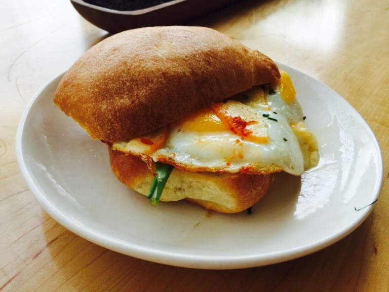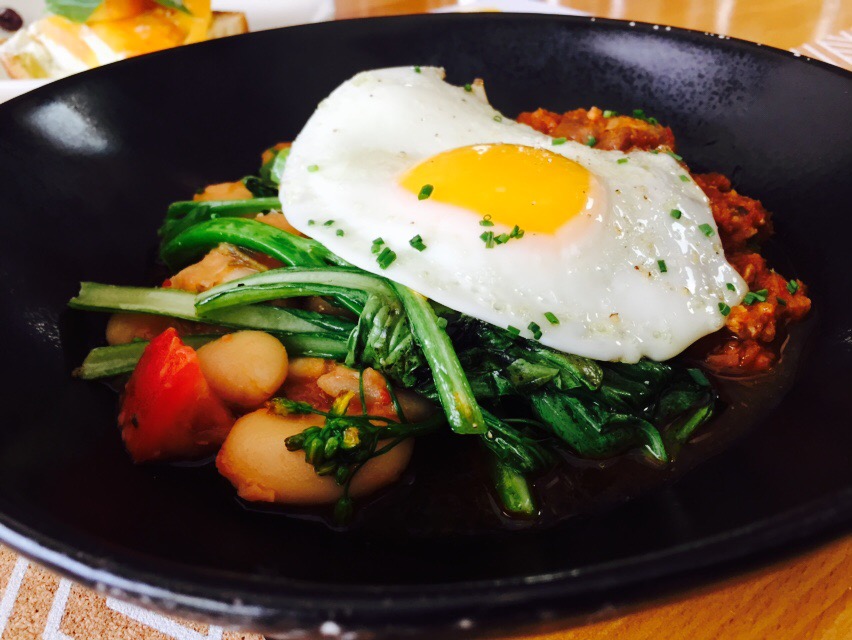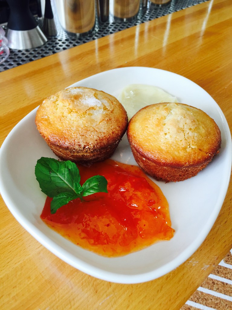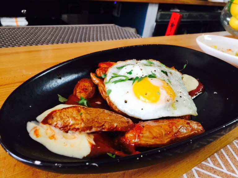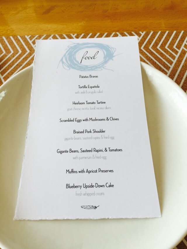 We had an opportunity to try the dishes ahead of time, and not only are we beyond impressed with their standard menu and bar, the brunch items are just as good. Starting with muffins and apricot marmalade, then moving on to the tortilla española, then to the heirloom tomato tartine, and the patatas brava with an egg, and then moving on to the braised pork shoulder and the egg sandwich, this brunch finished with an amazing blueberry upside-down cake.