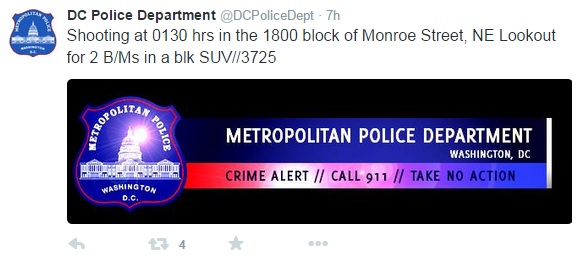 First, last night, there was a shooting reported by MPD at the 1800 block of Monroe Street NE.